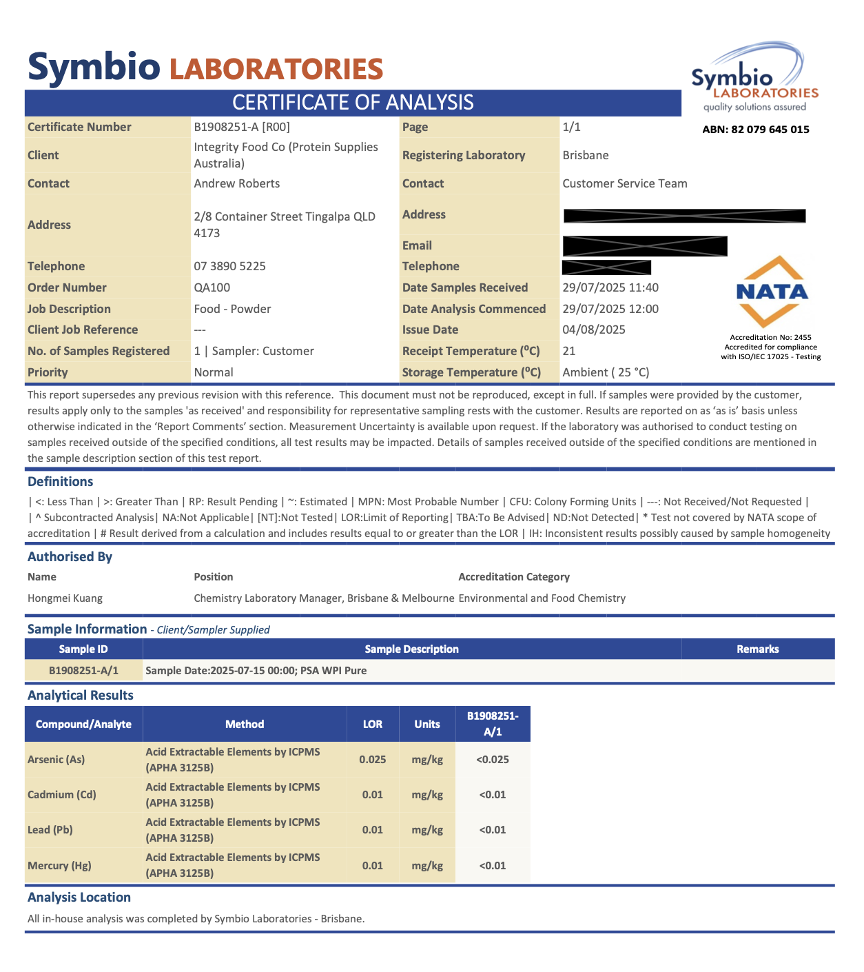 All test results are well within FSANZ limits, confirming the safety and purity of our Collagen product.